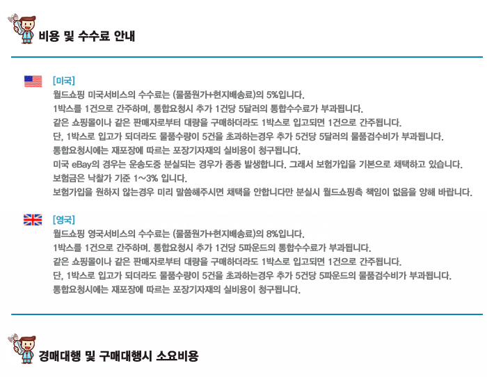 8. 경매 및 구매대행 상품의 보관 기간은 인수물품에 따라 다르며, 이 기간을 초과한 물품은 별도의 보관 규정을 따릅니다.